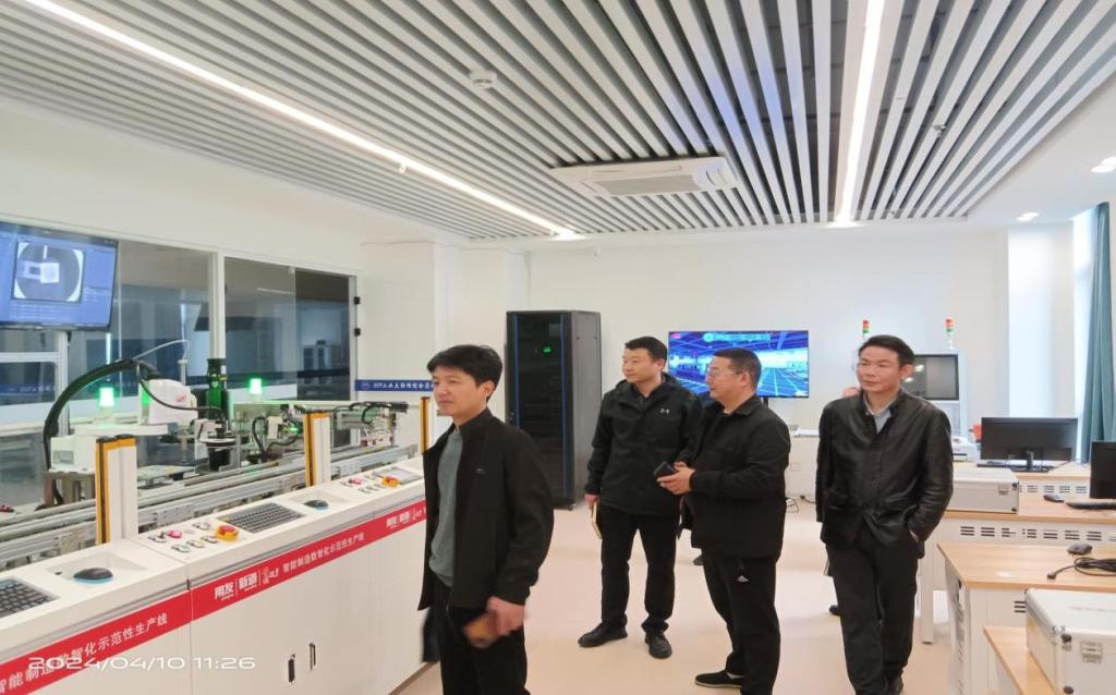 随后,必赢线路检测3003no1一行实地考察了湖南第一师范学院新建的电工电子实训室及智能制造装配线。