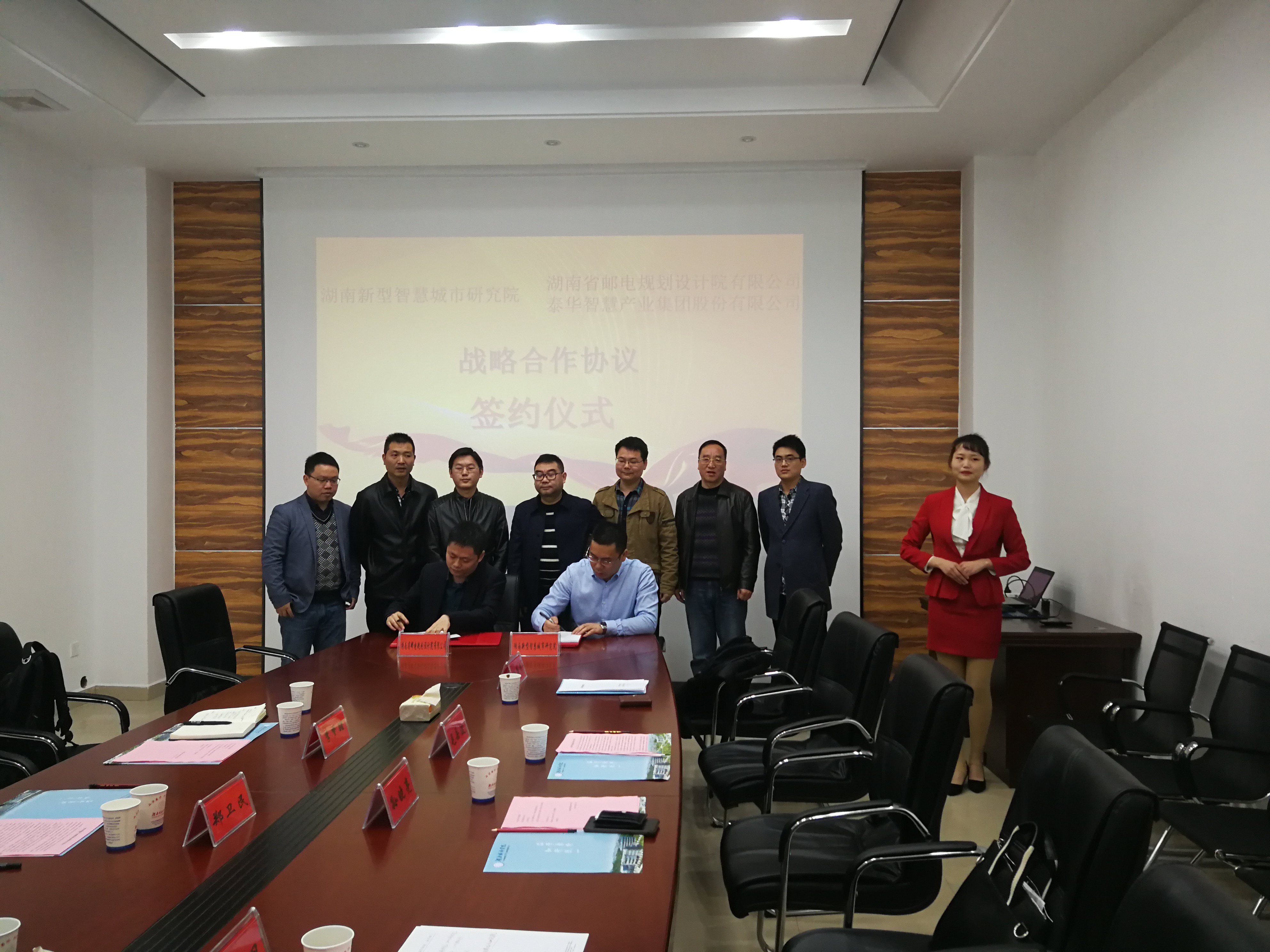 (本网讯)3月22日下午,湖南新型智慧城市研究院(简称研究院)与湖南省邮电规划设计院有限公司(简称:邮电设计院)、泰华智慧产业集团股份有限公司(简称:泰华智慧)等多家合作伙伴分别签订了战略合作协议。副校长郑卫民,研究院院长李梦醒,,邮电设计院总经理助理孙晓亮,泰华智慧长沙分公司总经理张明等出席签约仪式。仪式由研究院院长李梦醒主持。