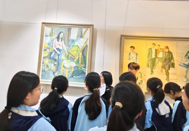 油画展区里,丰富的色彩搭配和独特的创作风格吸引着同学们的目光。有的作品用写实的手法展现了生活中的场景,人物的表情、动作刻画得淋漓尽致,仿佛能让人感受到画中人物的情绪;有的作品则采用抽象的风格,通过色彩的碰撞和线条的交织,传递出创作者独特的思想与情感,同学们发挥着自己的想象力,解读着作品背后的含义。